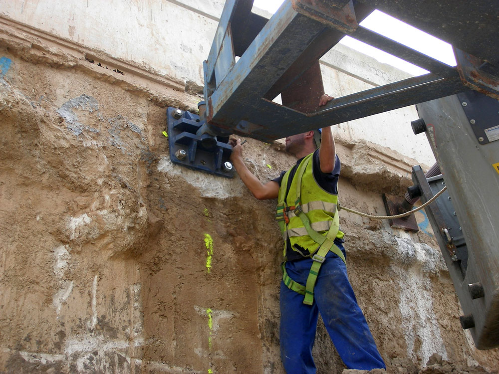 El último paso consiste en la fijación del puntal en la placa mediante el paso del bulón. Desde este instante el puntal ya realiza su función.
