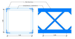 Tipología de sección compuesta cuadrada de 1000x1000 mm y cordones longitudinales mediante angulares de 150x150x15 mm. El arriostramiento de los cordones longitudinales se realiza con doble diagonal de 60x60x6 mm.