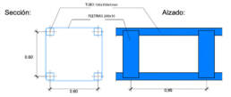 Celosía de sección compuesta de menor inercia que se emplea para longitudes más elevadas que el T-273, cuadrada de 600x600 mm y cordones longitudinales mediante tubulares de 100x100x5 mm. El arriostramiento de los cordones longitudinales se realiza con pletinas de 200x10 mm.